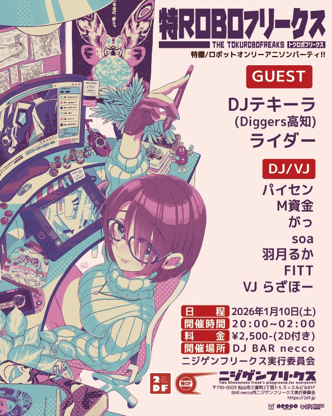 2015年より完全公募型アニソンイベント「ニジゲンフリークス[#ニジフリ]」を開始。2025年1月に10周年を迎えたニジフリは四国4県だけでなく九州、中国地方からも出演者、観客を集め現在進行形で進化を続ける。